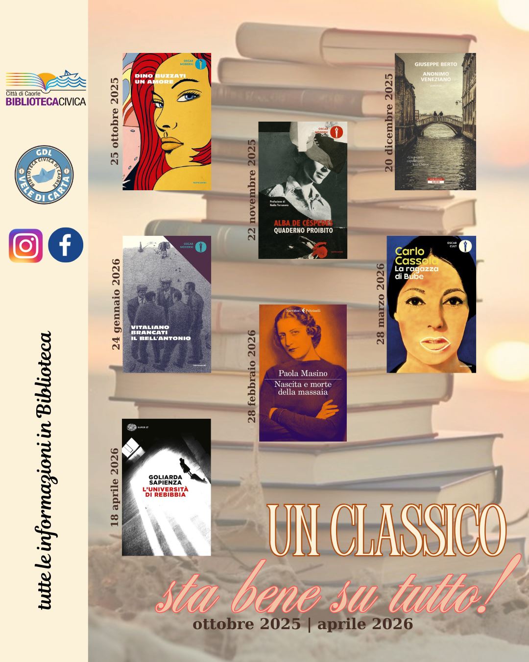 In questa stagione il tema sarà “UN CLASSICO sta bene con tutto!” con una selezione di libri dedicati ai grandi scrittori italiani del passato.